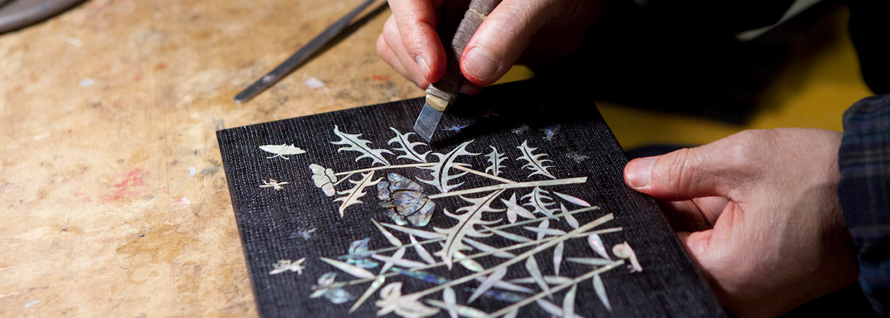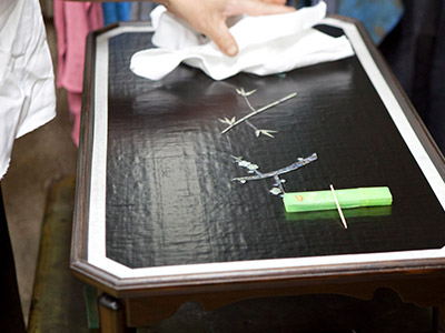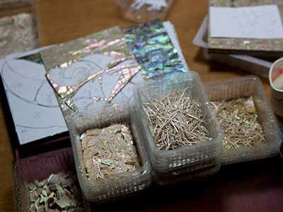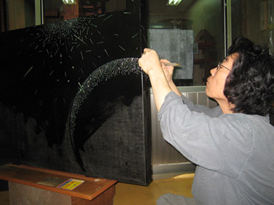 ¼Ò¶ó³ª Àüº¹, ÁøÁÖ Á¶°³ µîÀÇ ²®ÁúÀ» Á¤¼º½º·´°Ô °¥¾Æ ±× ¾ÈÂÊ¿¡ ÀÖ´Â ¹Ý¦ÀÌ´Â ÃþÀ» µå·¯³»°í, °Ë°Ô ¿ÌÄ¥ÇÑ ±â¹°À§¿¡ ÇÑ Á¡ ÇÑ Á¡ ºûÀ» »õ±âµí ÀÚ°³¸¦ ºÙÀÔ´Ï´Ù.